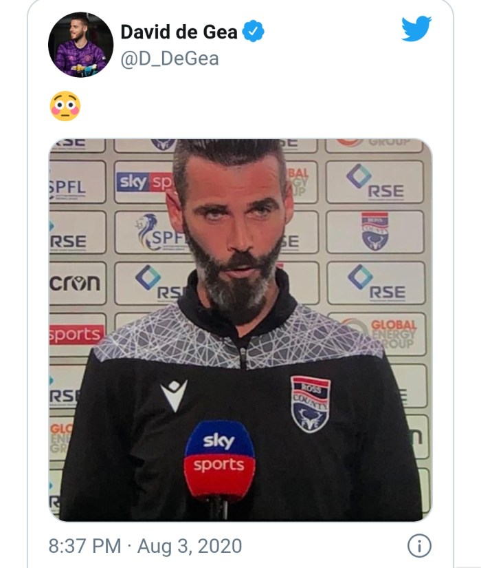 On the Staggies’ manager being tweeted by the Spain international, Mr Skinner said: “The idea that David de Gea was sitting in his house watching Ross County was difficult for me to comprehend. It’s scary how much of a resemblance there is between the two.”
