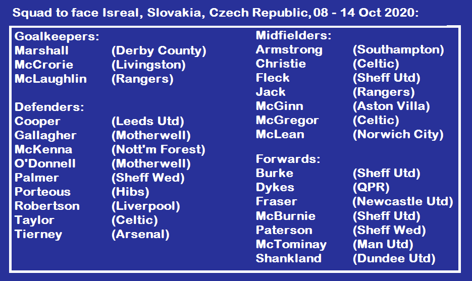 Scotland v Israel, European Championship, Path C play-off semi-final, Thurs 8th Oct, KO 19:45