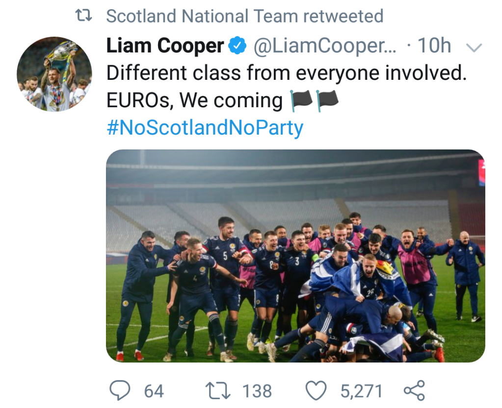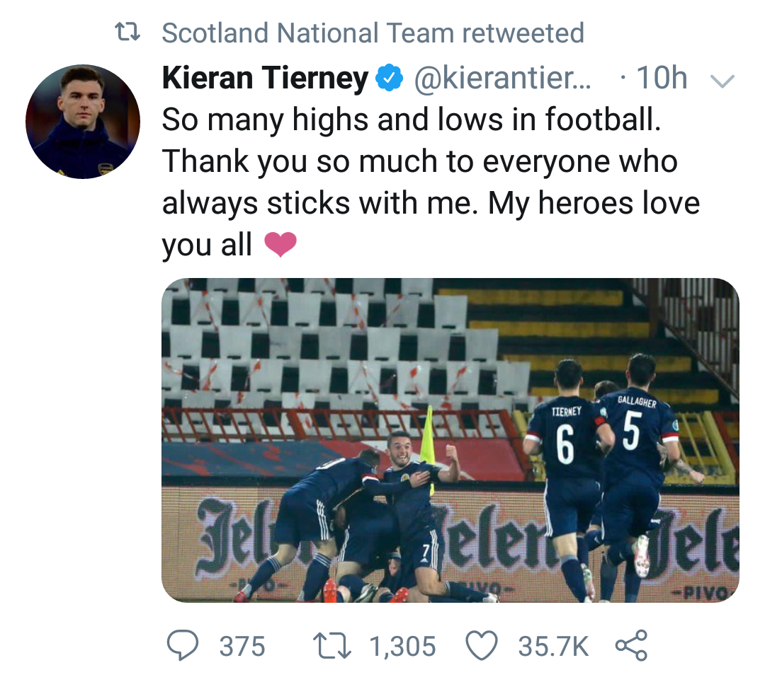 On his players, the Scotland manager didn’t hold back with praise: “The commitment and character they (the players) show, the quality they show, I’m just proud to be in charge of them. Their commitment is beyond question and if they did want to shed a tear then they were more than entitled to do that.”
