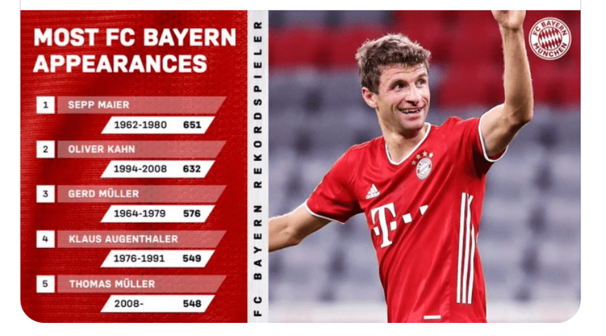 Müller also recently broke Oliver Kahn’s record of the most Bundesliga wins with the club, getting his 260th 3-points in the 2-1 victory over Cologne on matchday six.