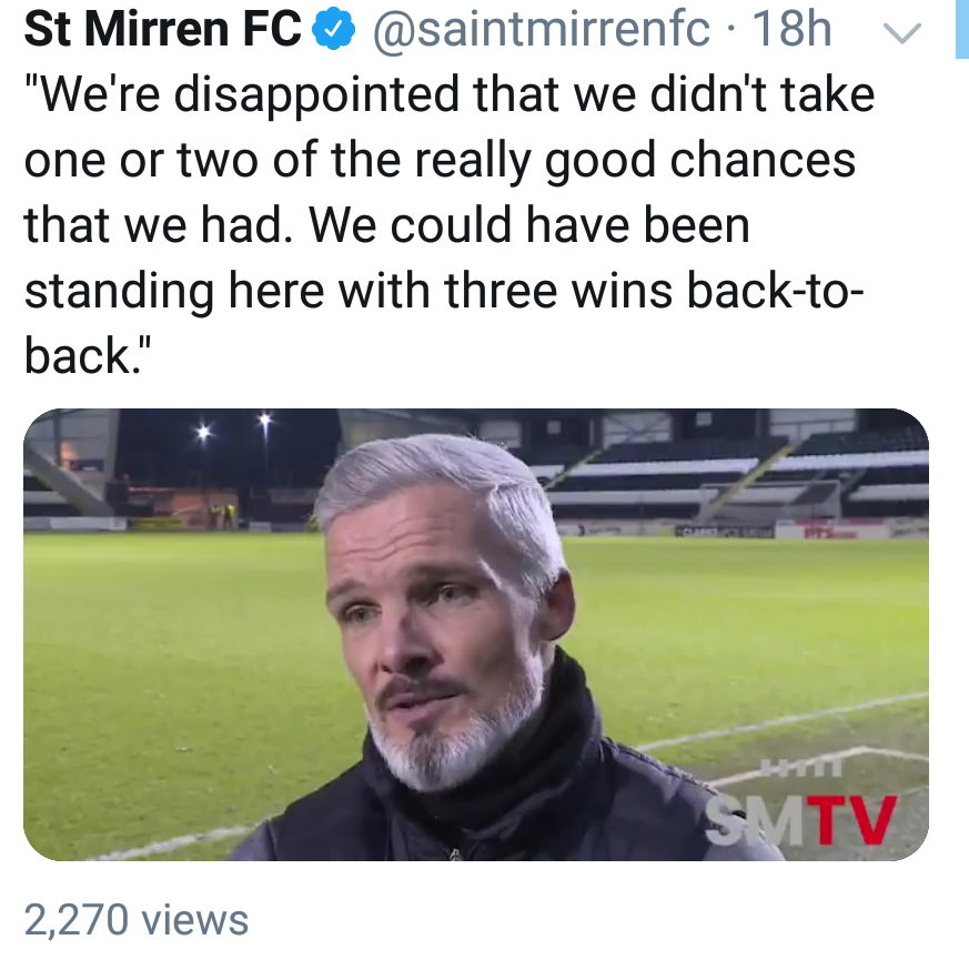 St Mirren boss Jim Goodwin felt the draw was a defeat after not capitalising on his team having the extra-man.