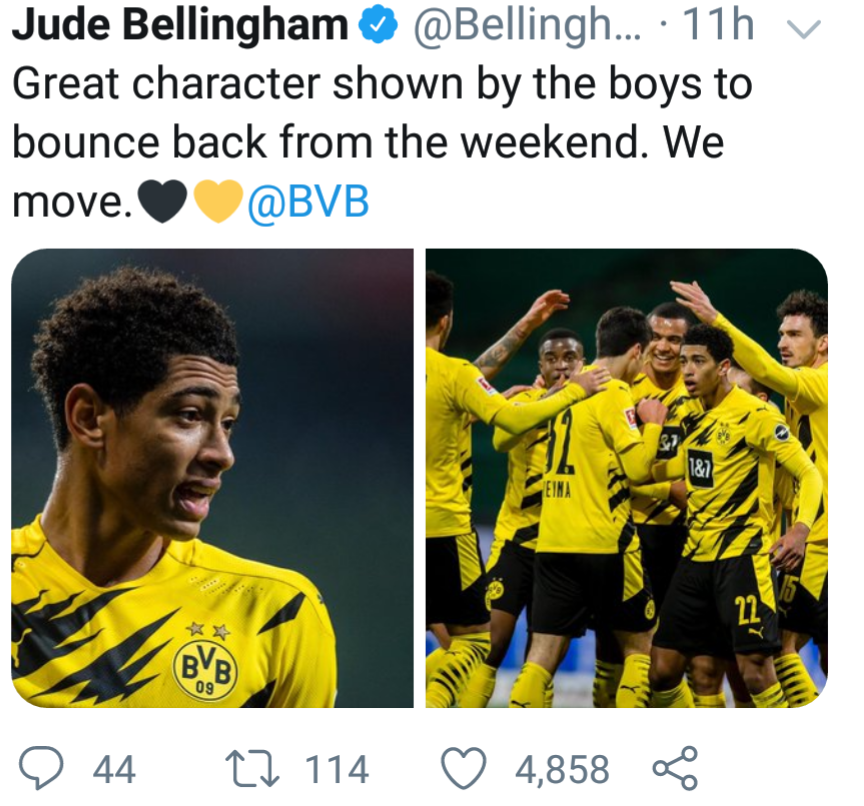 BVB, 4-2-3-1: Burki (GK), Hummels (->85′), Morey Bauza (->85′), Akanji, Reus (C), Witsel, Bellingham (->72′), Guerreiro, Sancho, Reyna, Moukoko (->80′)
