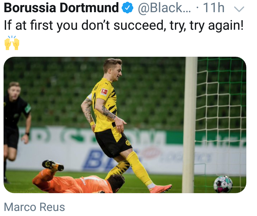 The most clear cut of these opportunities fell to the BlackYellow wonderkid Moukoko who couldn’t convert Reus’ cross to the back post which the young German had to stretch to connect with.