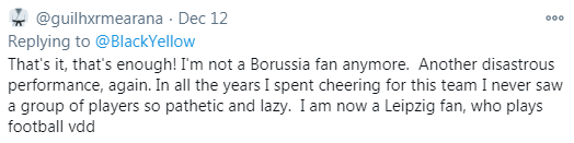 That’s enough! I’m not a Borussia fan anymore. Another disastrous performance, again. In all the years I spent cheering for this team I never saw a group of players so pathetic and lazy.