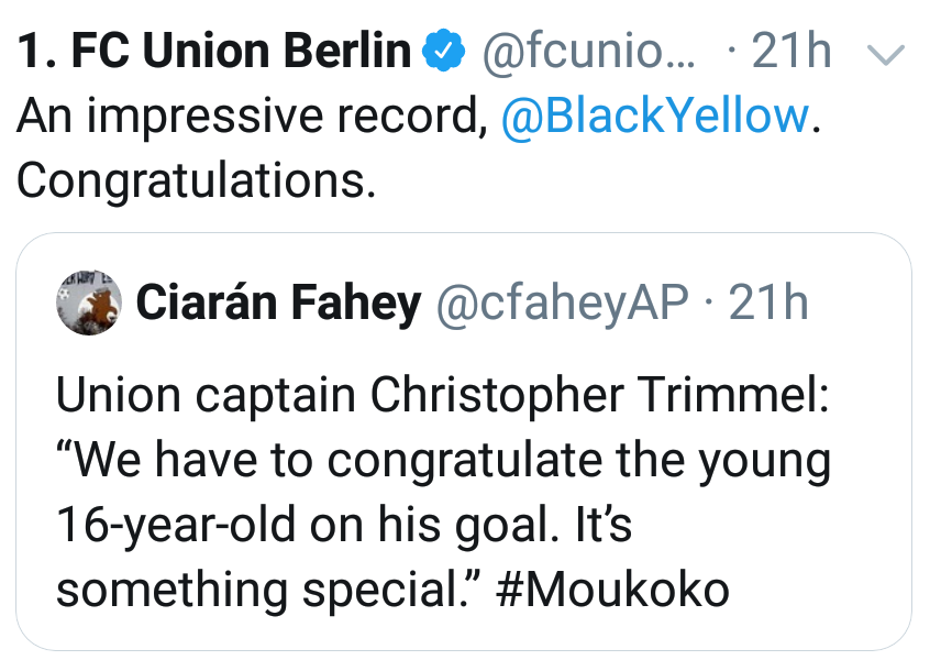 Goals: Awoniyi 57′, Moukoko 60′, Freidrich 78′