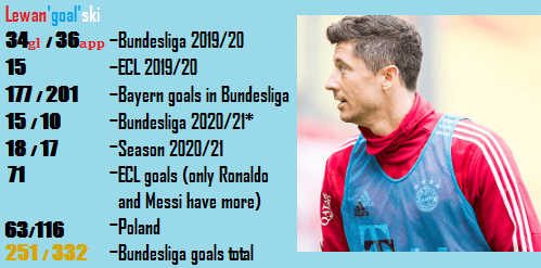 At 7:30pm GMT on Wednesday Lewan’s epic 24 hours began by scoring two against Wolfsburg to join Gerd Muller and Klaus Fischer in the Bundesliga 250 goal club, then on Thursday he was donning a suit and tie to collect the Best Fifa Men’s Player award off Messi and Ronaldo.