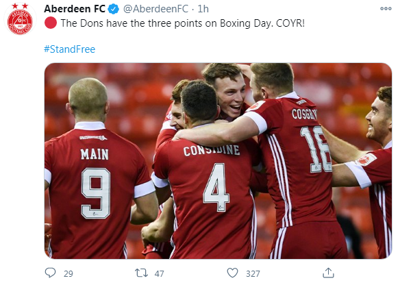 Commercial Director Rob Wicks said of the deal on the Aberdeen FC website: “This partnership is the result of a great deal of innovative thinking between the two clubs, both seeking a progressive approach to fan engagement during what is a very challenging period.