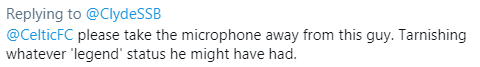 @CelticFC please take the microphone away from this guy. Tarnishing whatever ‘legend’ status he might have had.