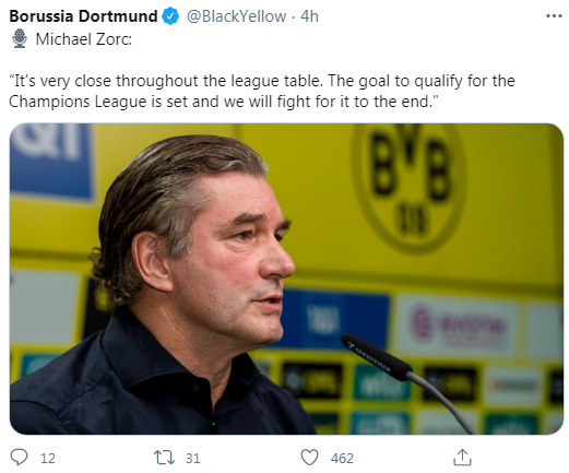 After initially targeting a title challenge sporting director Michael Zorc admitted the target is now to qualify for Europe.