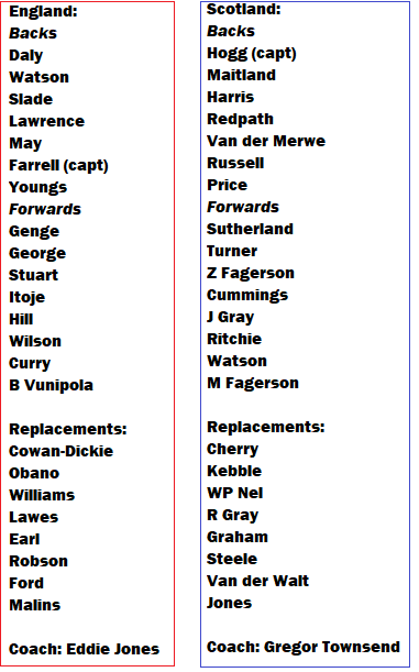 England v Scotland, Rnd 1 Six Nations 2021, Twickenham, Saturday, KO 16:45.