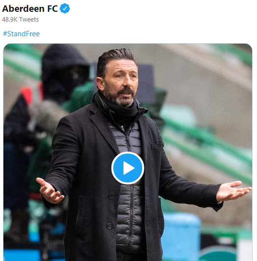 Derek McInnes speaking to BBC Scotland: “I am fine with pressure. I concentrate on the pressure to get myself and the team to win. We have been used to winning here over a period of time and we have been used to having strong campaigns. At the minute we are going through a tough spell and I think it is better we stick together and work our way through it, but pressure is there for managers. You don’t sign up to be a manager, specially Aberdeen manager, if you can’t handle pressure. I am absolutely fine.”