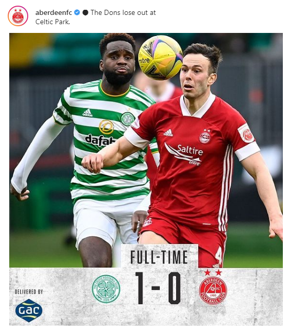 From feasting on the banquet of a whole goal last week, Aberdeen supporter’s were once again left to starve as the Don’s failed to find the net this week against Celtic.